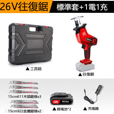 20分鐘前【德國精工鋰電鋸】鋼、鐵、磚頭、木材,統統都能鋸!續航久、充電快,方便攜帶,一機多用 - 26V德國精工往複鋸(機頭+1充2電)贈塑箱+5鋸條+大/5鋸條NT$2590