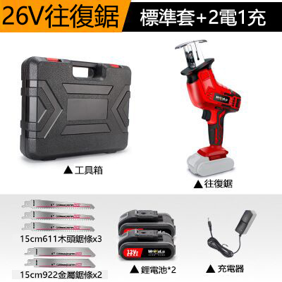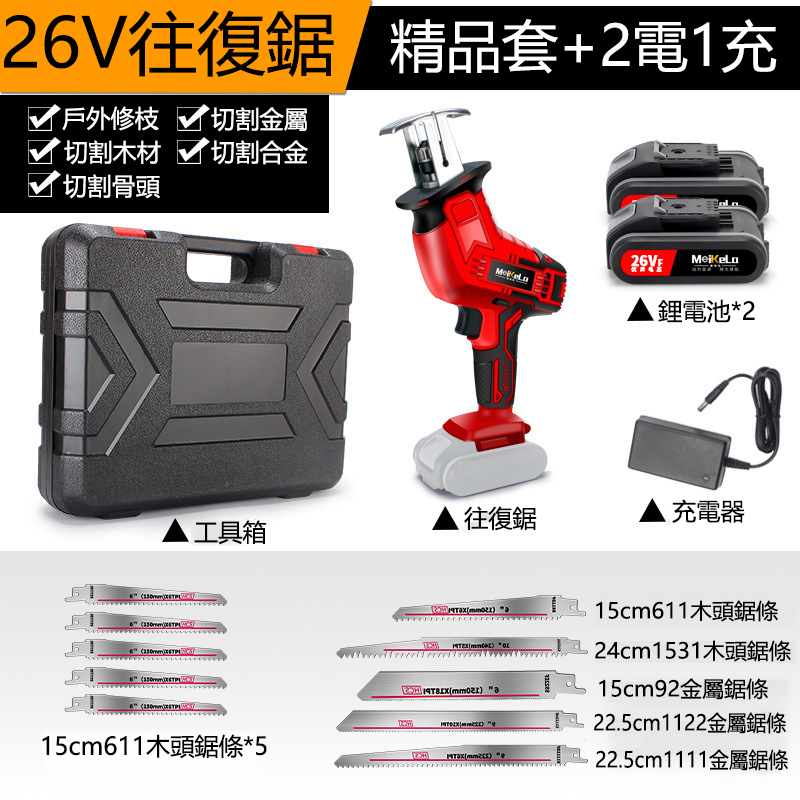 15分鐘前【德國精工鋰電鋸】鋼、鐵、磚頭、木材,統統都能鋸!續航久、充電快,方便攜帶,一機多用 - 26V德國精工往複鋸(機頭+1充2電)贈塑箱+5鋸條+大/5鋸條NT$2590