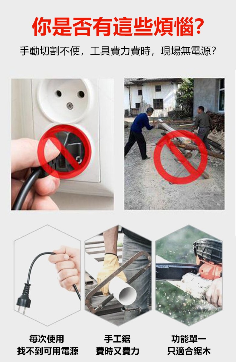 12分鐘前【德國精工鋰電鋸】鋼、鐵、磚頭、木材,統統都能鋸!續航久、充電快,方便攜帶,一機多用 - 26V德國精工往複鋸(機頭+1充1電)贈工具箱+5鋸條NT$1790