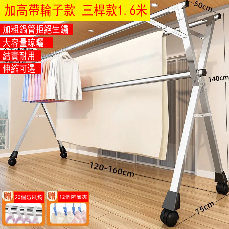 5分鐘前【下單即送20個防風掛鉤】不鏽鋼免安裝折疊家用伸縮式晾衣架 - 2025升級款加萬向輪1.6米【可伸縮-送20個防風鉤+12個防風夾】 NT$1790