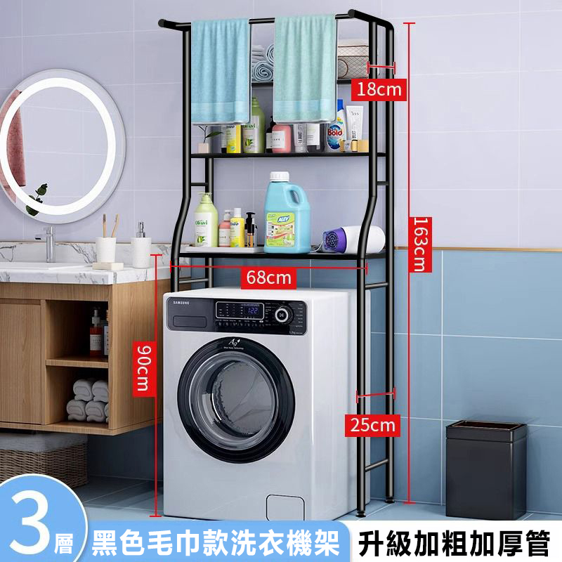 11分鐘前浴室收納必備!馬桶/洗衣機專用置物架,完美利用每一寸空間,整潔又實用! - 【黑色】3層洗衣機置物架