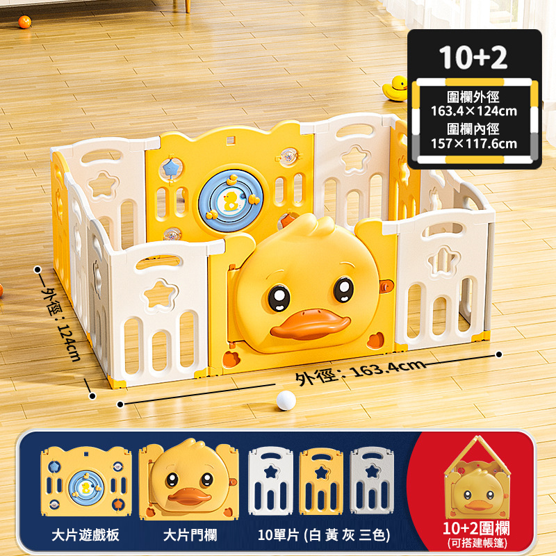 2分鐘前愛他/她!就給他/她滿滿的愛!寶寶學步遊戲圍欄,呵護寶寶安全【週年特賣,買1送4】 - 可折疊小鴨子款【10+2】124-163cm圍欄