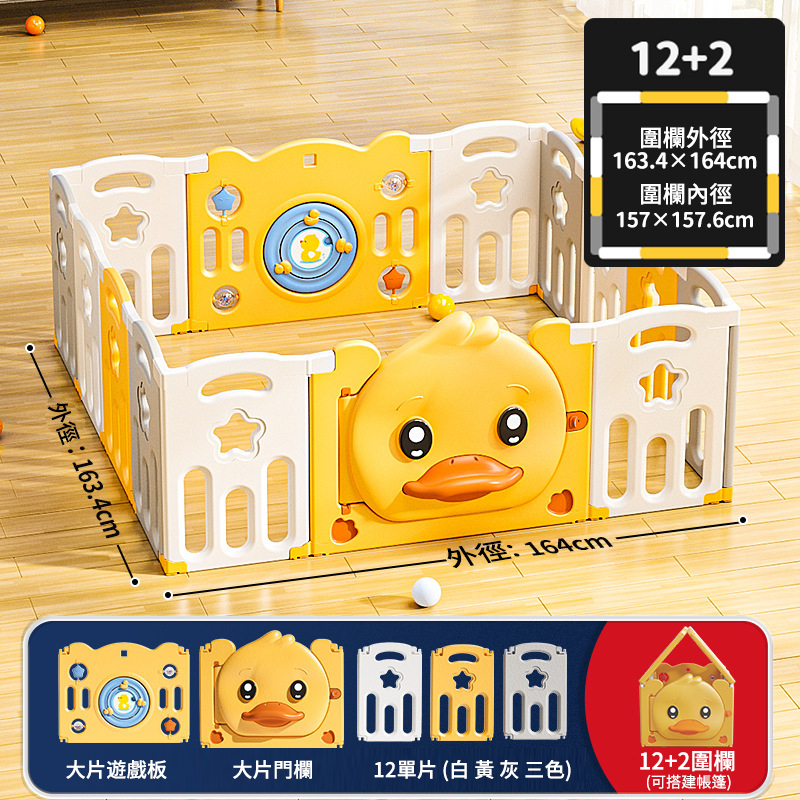 5分鐘前愛他/她!就給他/她滿滿的愛!寶寶學步遊戲圍欄,呵護寶寶安全【週年特賣,買1送4】 - 可折疊小鴨子款【12+2】163-164cm圍欄