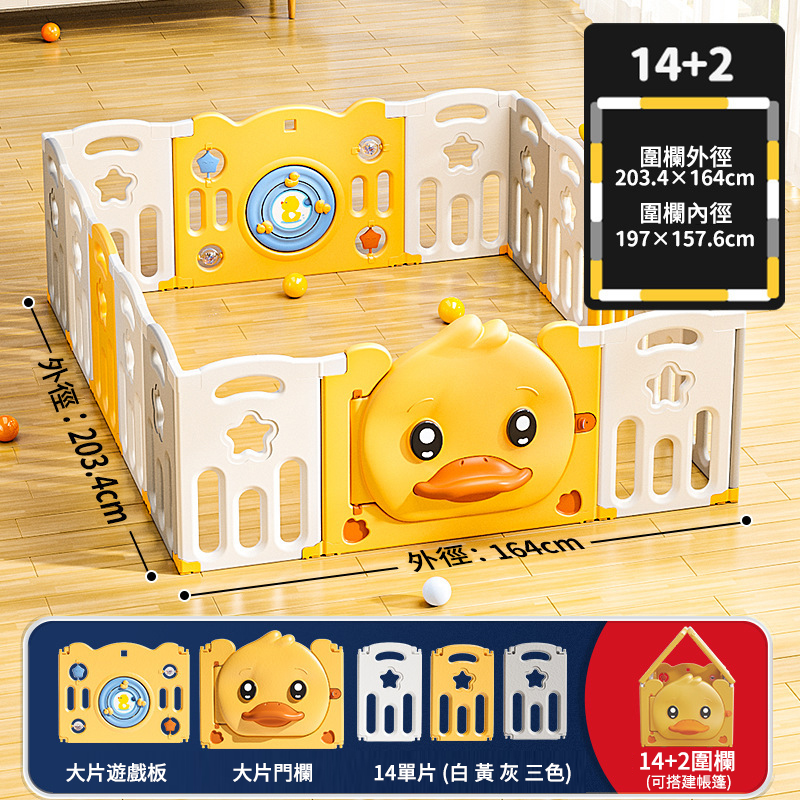 半小時前愛他/她!就給他/她滿滿的愛!寶寶學步遊戲圍欄,呵護寶寶安全【週年特賣,買1送4】 - 可折疊小鴨子款【14+2】164*203cm圍欄