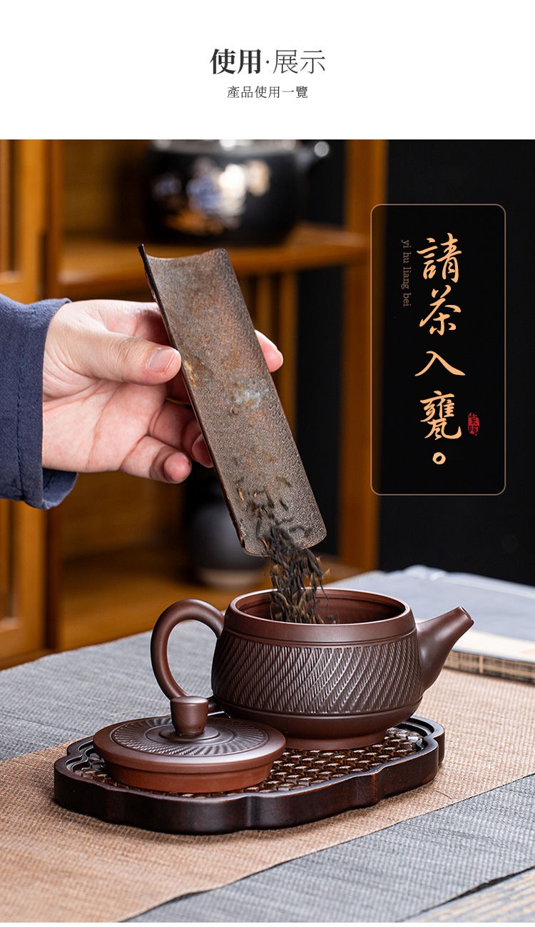 5分鐘前經典傳承・匠心打造|【大師純手工紫陶鳳鳴壺】復古跳刀紋漢瓦壺(一壺兩杯)・黃金大容量300cc + 球孔過濾,鳴音設計顯格調 - 紫陶漢瓦壺【單壺】