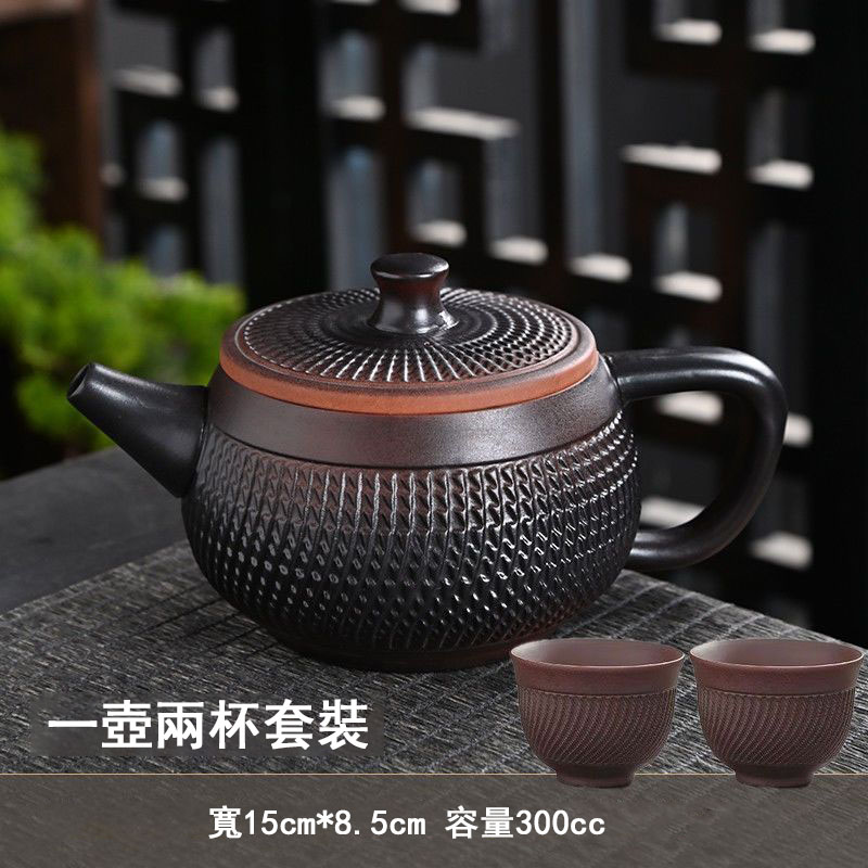 7分鐘前經典傳承・匠心打造|【大師純手工紫陶鳳鳴壺】復古跳刀紋漢瓦壺(一壺兩杯)・黃金大容量300cc + 球孔過濾,鳴音設計顯格調 - 紫陶漢瓦壺【單壺】