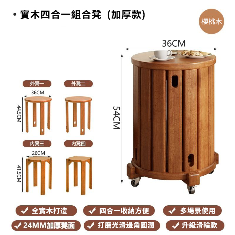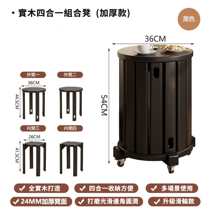 20分鐘前全實木可疊放凳 升級6入組|多功能茶几椅子 二合一設計 MIT台灣製造|茶几+椅子一次搞定 - 【4合1】免安裝-全實木加厚-可疊放【兩大+兩小】底托+萬向輪---NT$4760