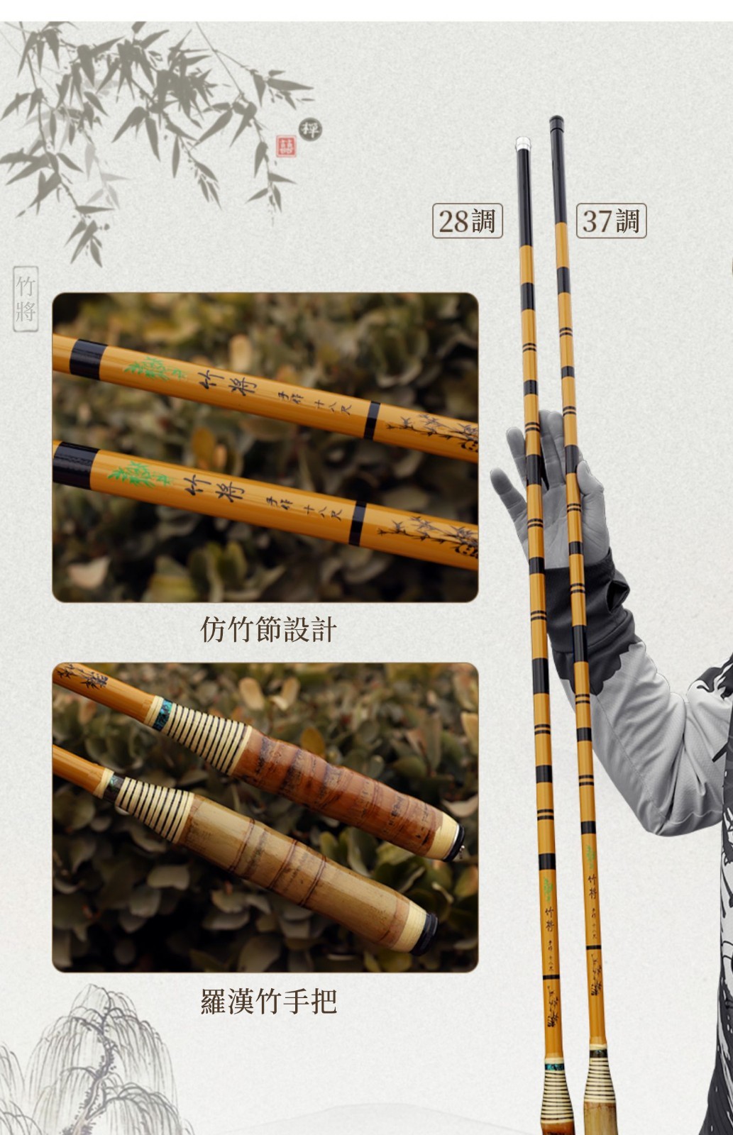 半小時前【傳世大師之作】30年羅漢竹28調鯉魚竿37調鯽魚竿! - 【37調鯽魚竿】18尺(5.4m)+原裝竿稍+釣魚大禮包NT$ 1980
