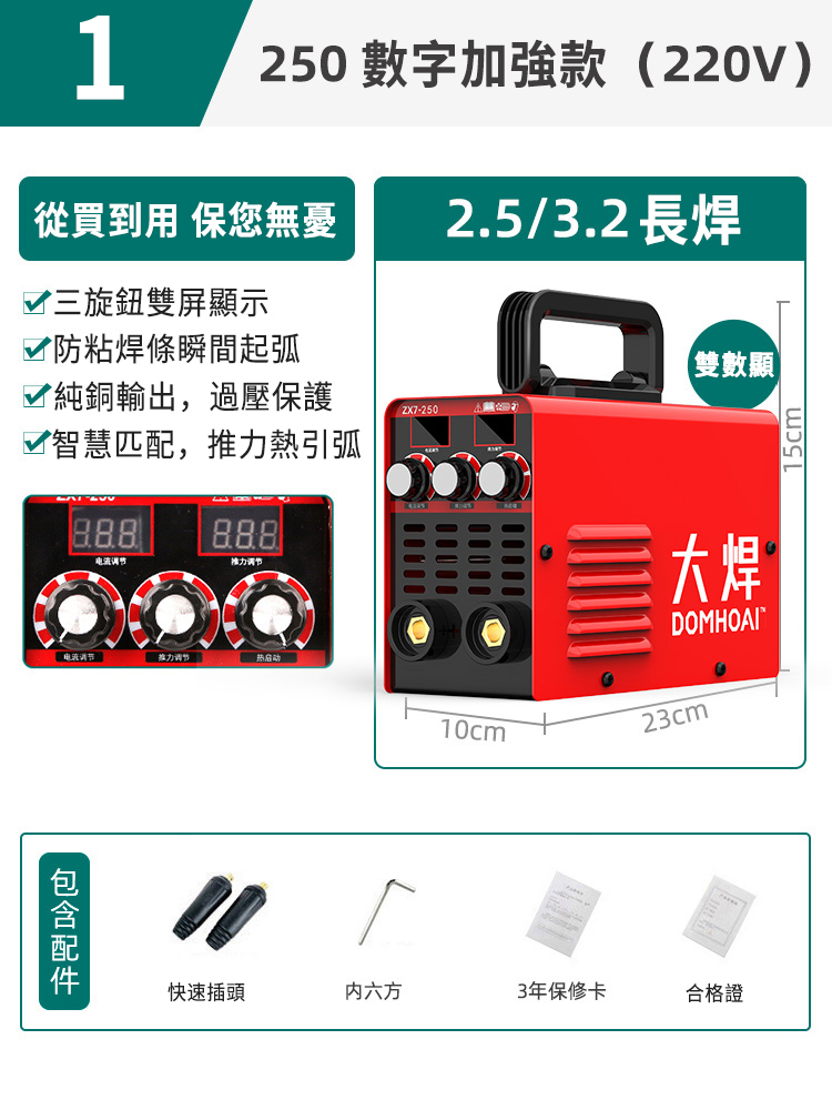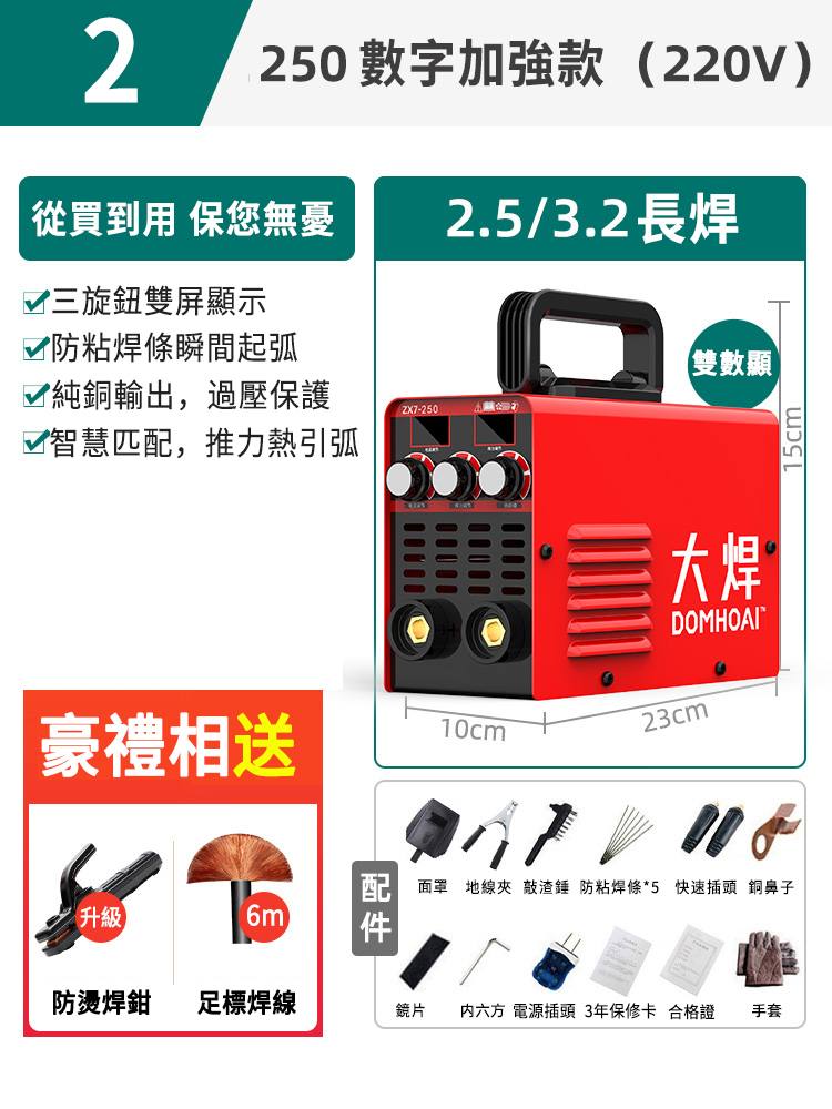 25分鐘前業內焊機領軍品牌【德國DOMHOAI】全新二代數字化電焊機,瞬間起弧,長焊4.0焊條 - 【250-220V】數字加強款+基礎套餐
