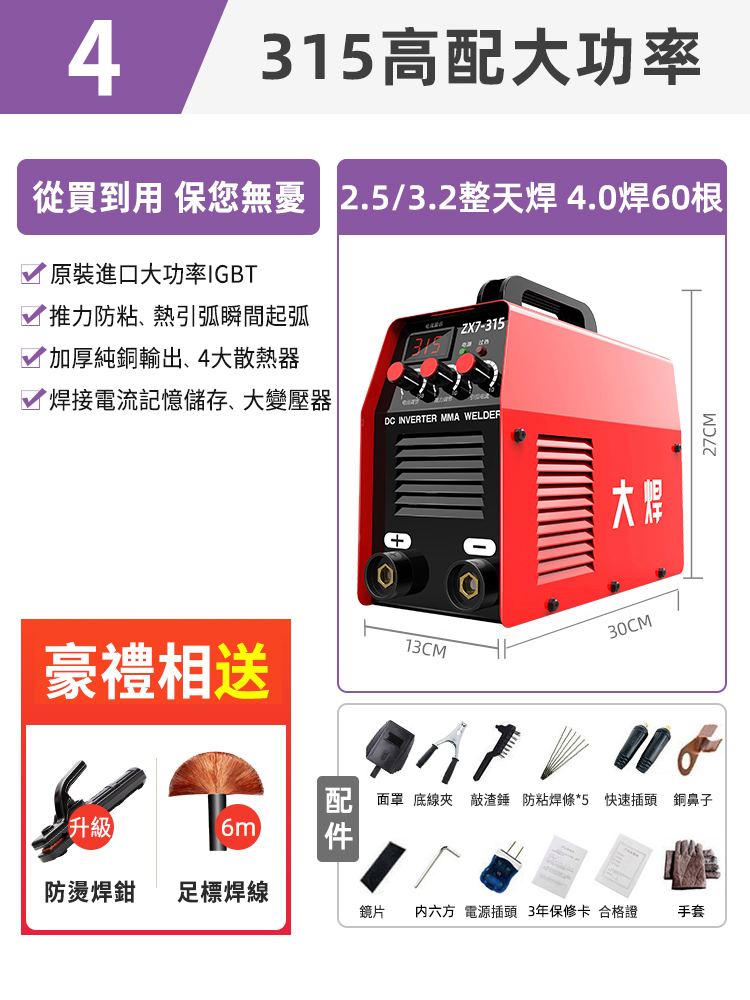 4分鐘前業內焊機領軍品牌【德國DOMHOAI】全新二代數字化電焊機,瞬間起弧,長焊4.0焊條 - 【315-220V/380V】高配款焊機+防燙焊鉗+6米焊線+大禮包
