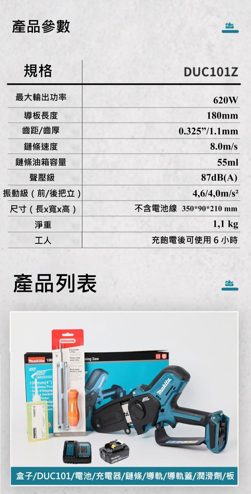 4分鐘前「牧田官方旗艦店」 DUC101小型鋰電手持電鋸 園林修剪 木材切割 21v大容量鋰電池 馬力強勁切割不卡殼 - 4吋21v鋰電鋸「一電一充」 NT$1680