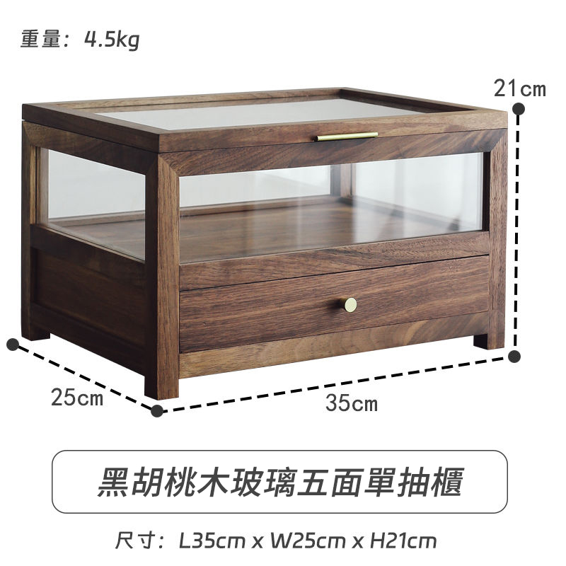 7分鐘前「純手工匠製」胡桃木製作桌面博古架 ,節省空間 大氣典雅的茶具置物架 - 黑胡桃木-五面玻璃盒