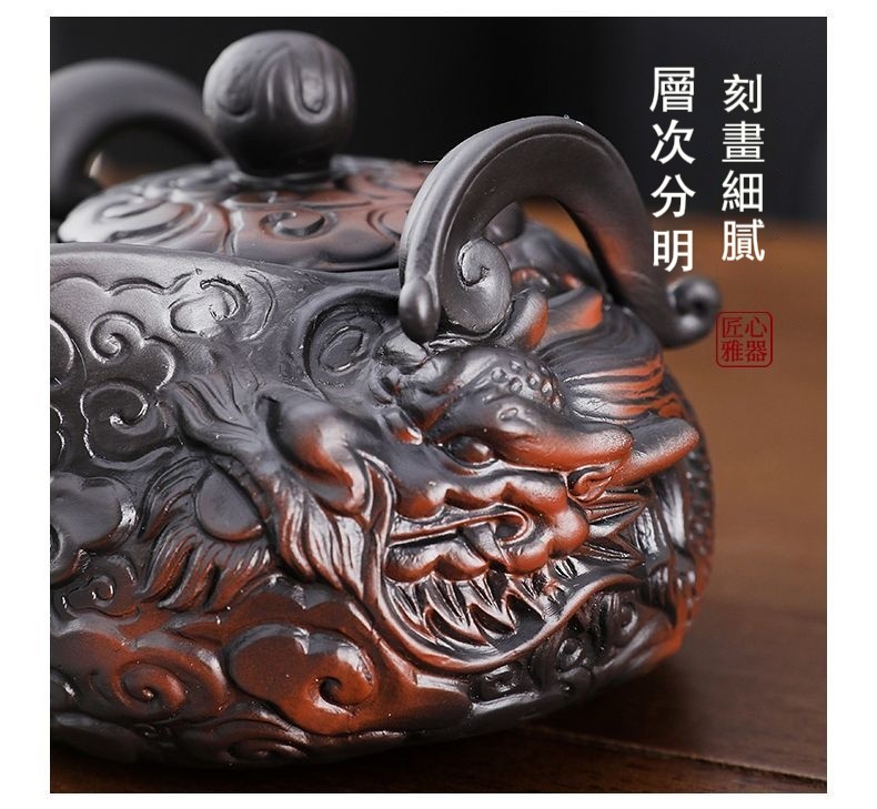 ✩ 絕版收藏!正宗宜興紫砂朱泥長嘴供春壺 ❘ 黃金大容量500cc ❘ 純手工浮雕匠製,泡茶更香